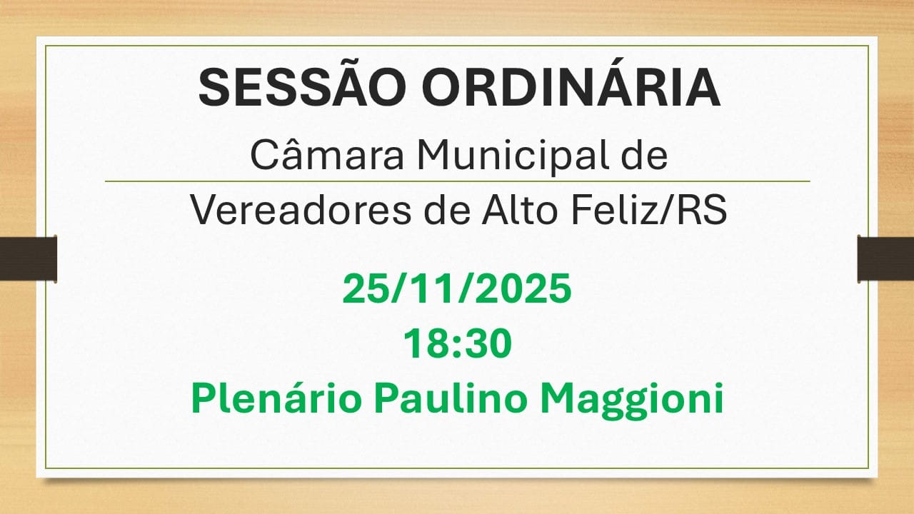 Alto Feliz, 25 de novembro de 2025, 18:30. PROJETOS DE LEI ENVIADOS PARA APRECIAÇÃO: PL do Executivo nº 114/2025 em 14/11/2025. – Necessita de…