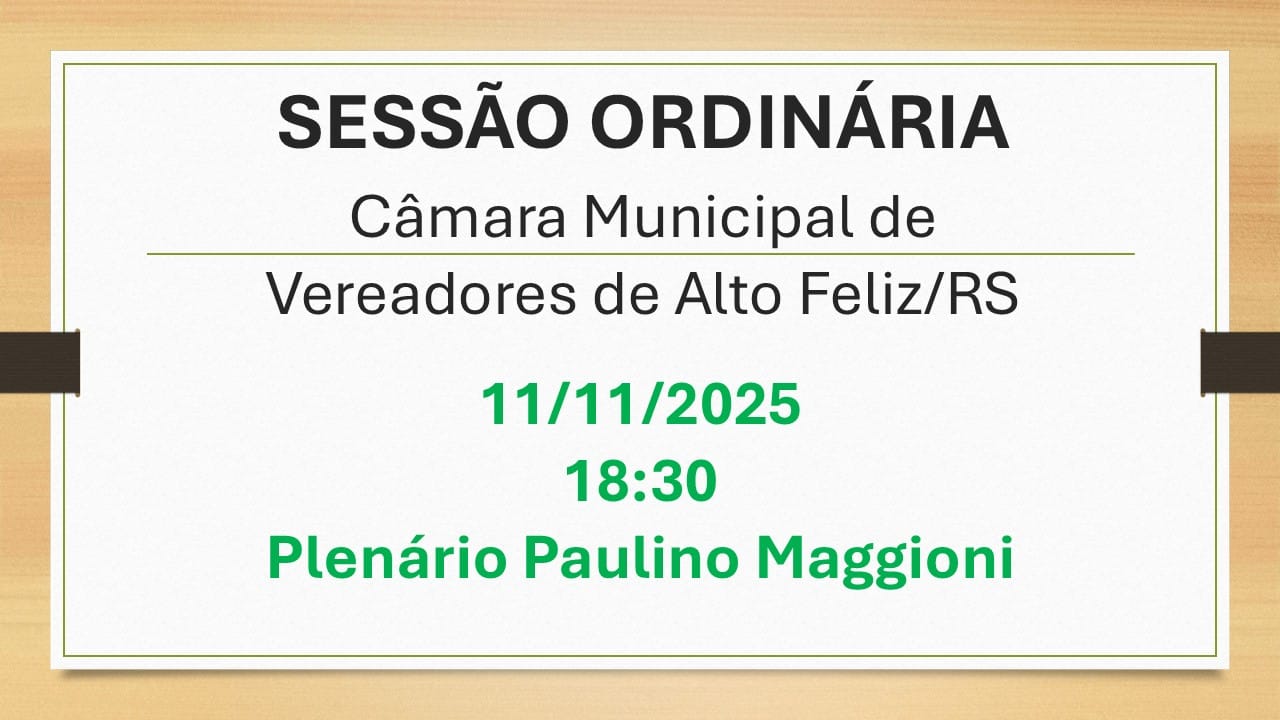 Alto Feliz, 11 de novembro de 2025, 18:30. PROJETOS DE LEI ENVIADOS PARA APRECIAÇÃO: PL do Executivo nº 110/2025 em 06/11/2025. Prorroga, para 31 de…